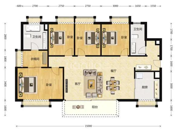 客厅作为正厅南北更加通畅,